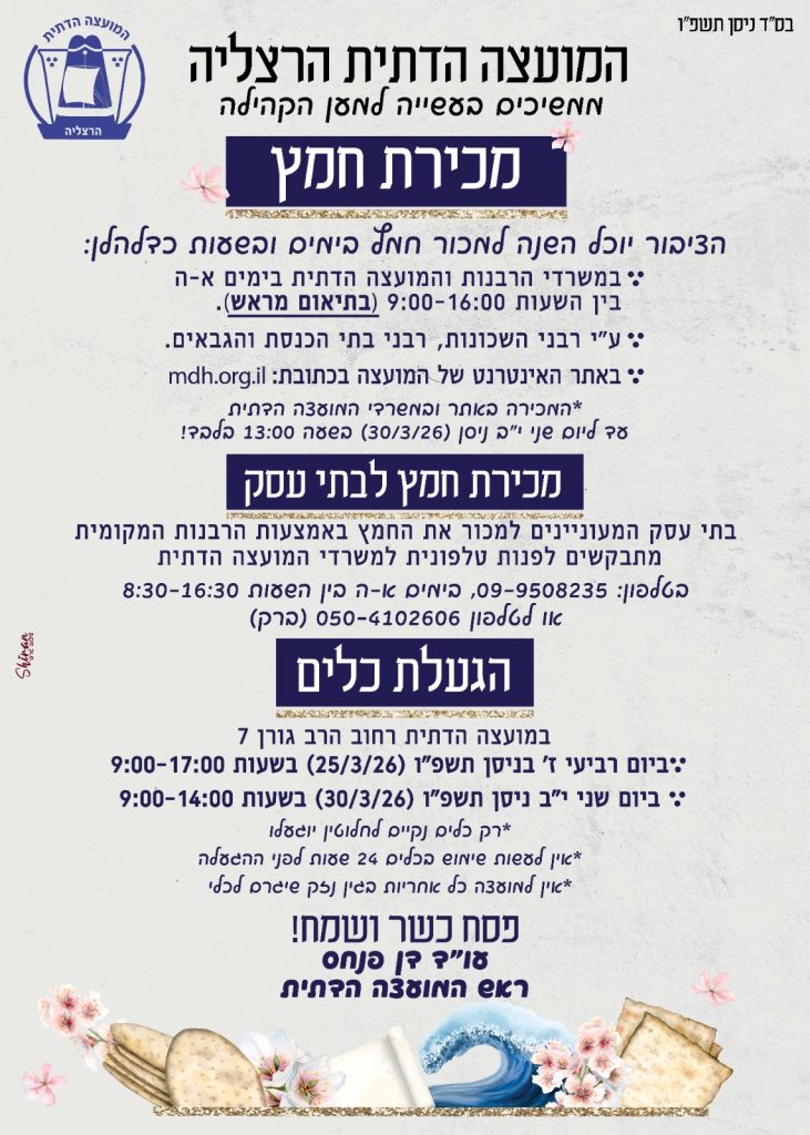 זמני תפילות בהרצליה - קובץ נגיש להורדה